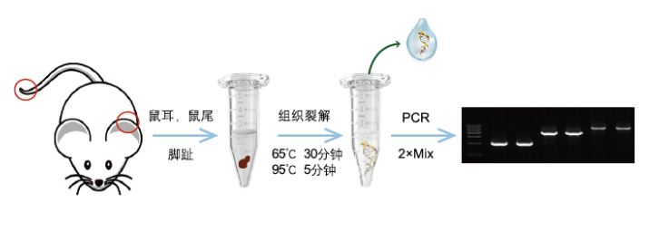 ■ 適用廣泛:適用於從小鼠尾巴、耳朵以及腳趾等組織中一步法提取基因組 DNA
