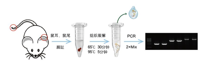 ■ 適用廣泛:適用於從小鼠尾巴、耳朵以及腳趾等組織中一步法提取基因組 DNA。
