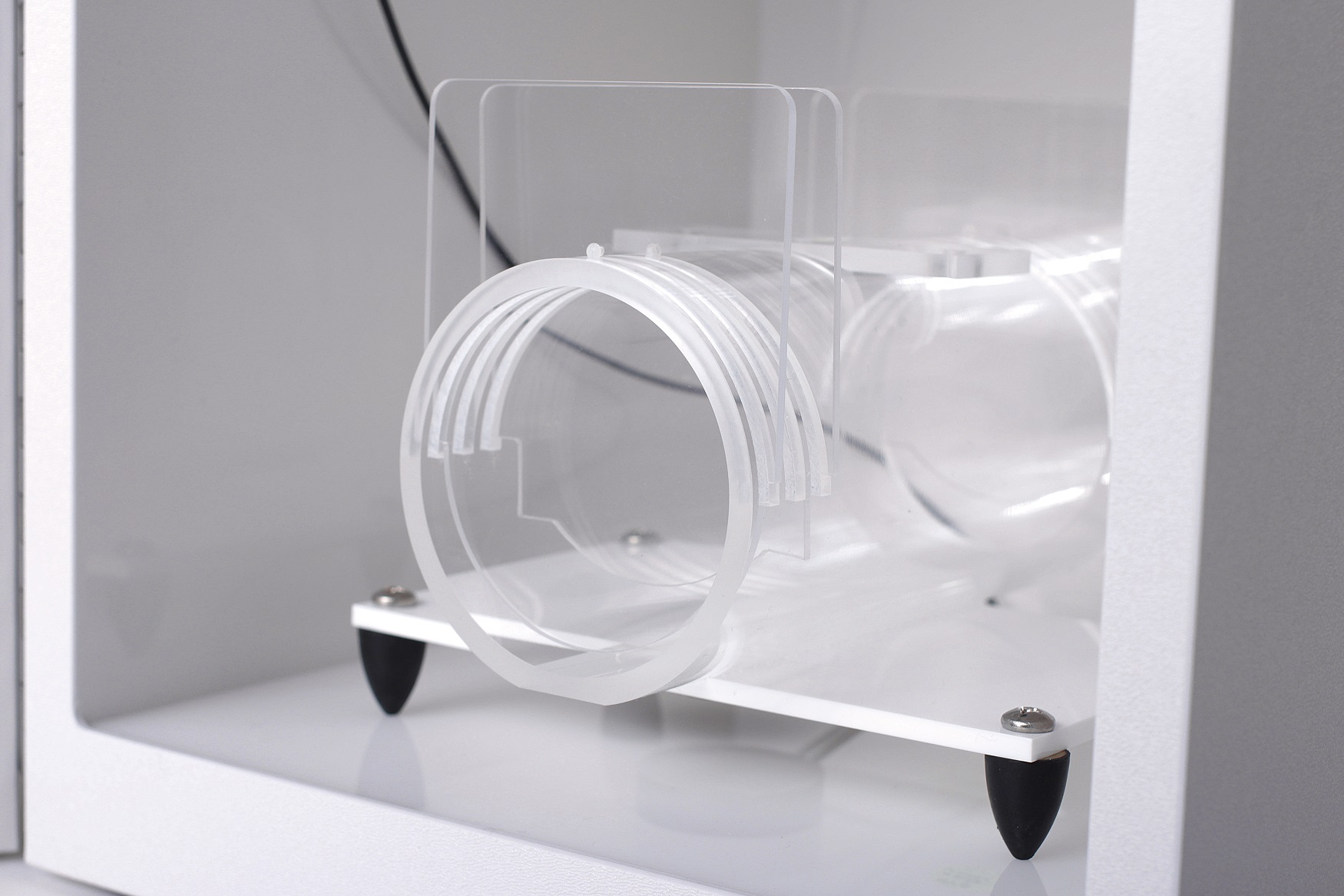 SR-LAB特別設計管狀外殼讓動物在空間裡不被束縛,避免讓它們有約束壓力,進而影響試驗結果。此外,管狀的特殊設計使動物在感測器上方活動,隨時監測它們的行為,紀錄各種驚嚇反應。外殼採用透明壓克力設計,易於清潔,目前有五種不同尺寸供選擇。