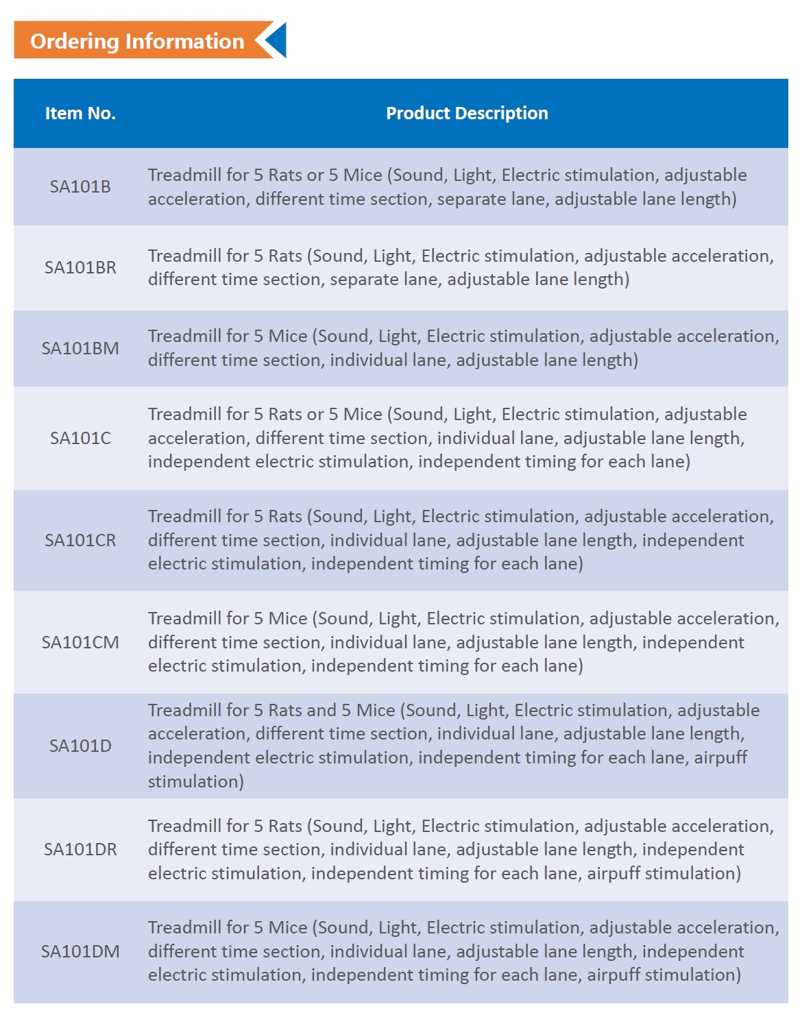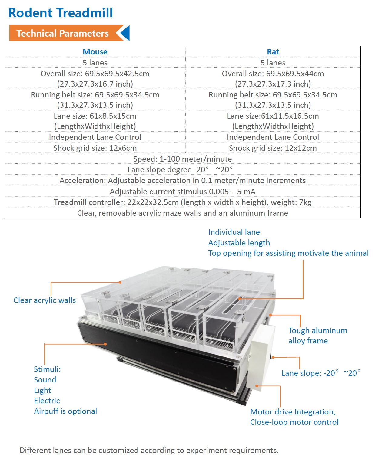 - 自保護機制:跑步機可以自動判斷和記錄疲勞時間,並自動停止動物刺激,有效保護實驗動物。