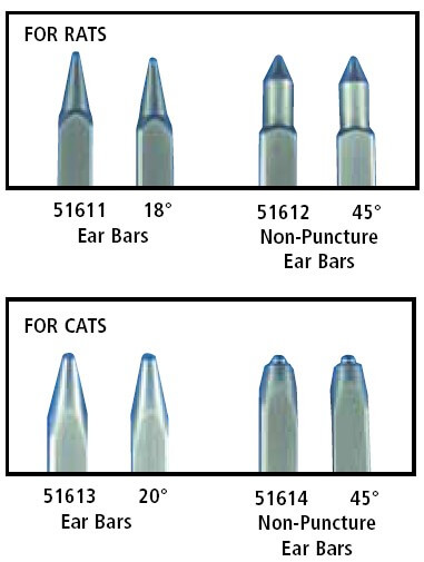 Traditional and Non-puncture tips on the same ear bar (51500 series stereotaxics)