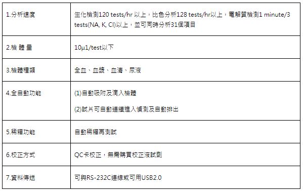 - 電解質測量功能: 可測量電解質 (Na-K-Cl)