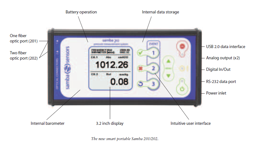 SAMBA設計具有電磁反應-Free的偵測探頭 , 使得在如核磁共振成像般高強度的電磁環境下測定壓力值變得簡單易行, 電子自動化和光纖的結合,精確迅速測定壓力。