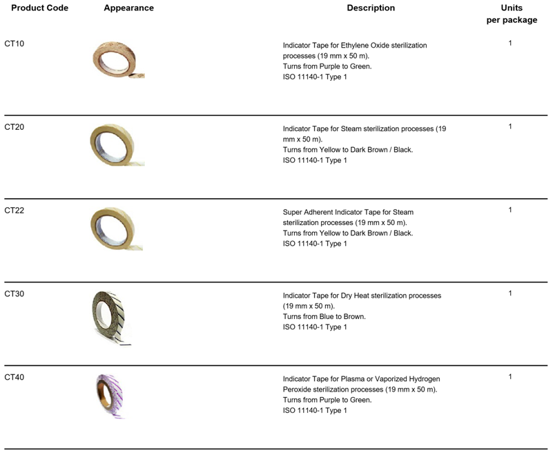 滅菌膠帶 首頁 產品介紹 實驗室儀器設備 e.滅菌消毒相關 滅菌膠帶 Terragene生物指示劑及化學指示劑廣泛應用於製藥廠及醫療機構,用於檢測蒸氣,低溫甲醛蒸氣,過氧化氫,氧化乙烯氣等殺菌過程,產品生產嚴格遵守 IRAM / GMP / ISO。 滅菌膠帶適用在EO滅菌、過氧化氫滅菌、蒸氣滅菌、福馬林滅菌,並會依照滅菌完成與否進行變色區別。 商品介紹 Self-adhesive indicator tape