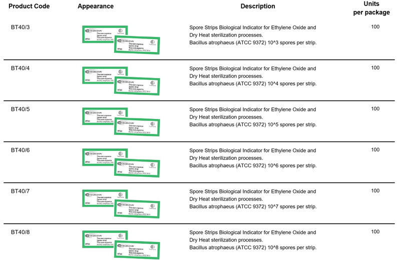 生物滅菌確效指示劑 (試片式) 首頁 產品介紹 實驗室儀器設備 e.滅菌消毒相關 生物滅菌確效指示劑 (試片式) 該系列產品是由薄紙封套內裝有孢子試片,滅菌完畢後撕開封套,取適當的培養基與孢子試片進行培養,即可得到結果。 滅菌方式包含: 蒸氣滅菌、過氧化氫(H2O2)滅菌、gamma滅菌、Ethylene Oxide(EO)滅菌、過乙酸滅菌、福馬林滅菌、乾熱滅菌等多項滅菌方式 Terragene生物指示劑及化學指示劑,廣泛應用於製藥廠及醫療機構。用於檢測蒸氣、低溫甲醛蒸氣、過氧化氫、氧化乙烯氣等殺菌過程,且產品生產嚴格遵守 IRAM / GMP / ISO * 歡迎來電洽詢 * 商品介紹 Biological Indicators (Spore Strips)
