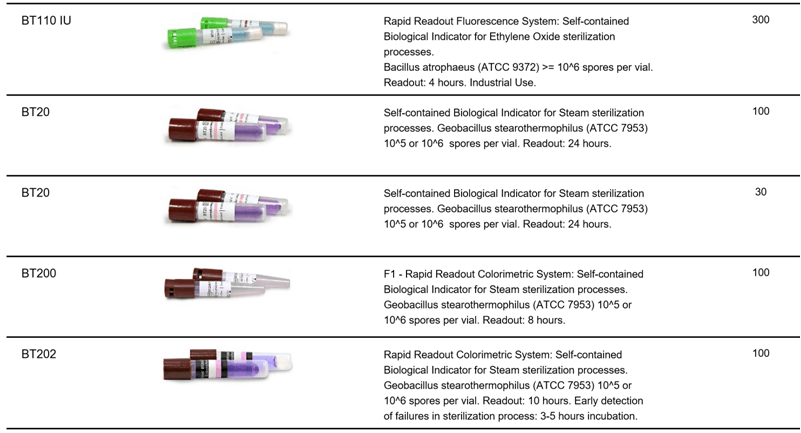 Terragene生物指示劑及化學指示劑,廣泛應用於製藥廠及醫療機構。用於檢測蒸氣、低溫甲醛蒸氣、過氧化氫、氧化乙烯氣等殺菌過程,且產品生產嚴格遵守 IRAM / GMP / ISO