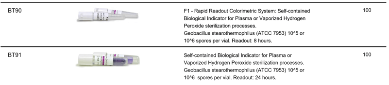 內管式生物指示劑該系列產品每個指示劑都由塑膠管盛裝含有TSB培養基的玻璃安瓶,塑膠管內裝有孢子紙片,滅菌完畢後按壓管壁壓碎安瓶,使培養基與孢子培養指定時間即可得到結果。