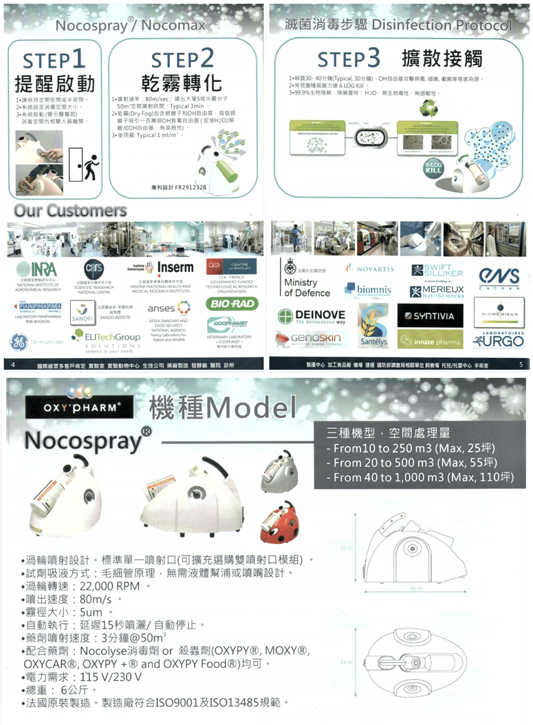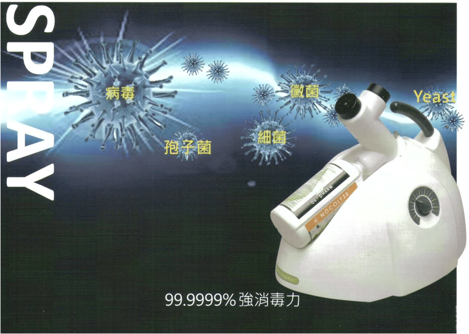 ˙ 配合藥劑 : Nocolyse 消毒劑 or 殺蟲劑(OXYPY, MOXY, OXYCAR, OXYPY+ and OXYPY Food) 均可