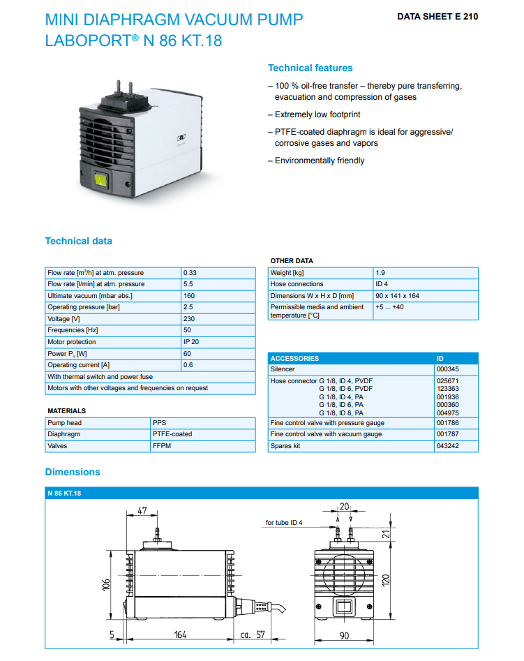 N 86 K_.18 的設計核心在於「極致精簡」與「多功能性」,它同時具備抽真空與提供正壓壓縮的功能。