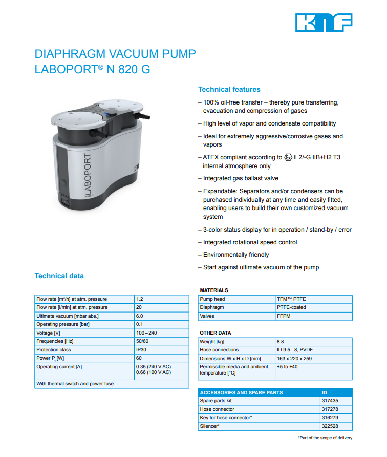 N 820 G 結合了極致的耐化學腐蝕性與智慧控制,是目前市場上最安靜、最穩定的實驗室幫浦之一。
