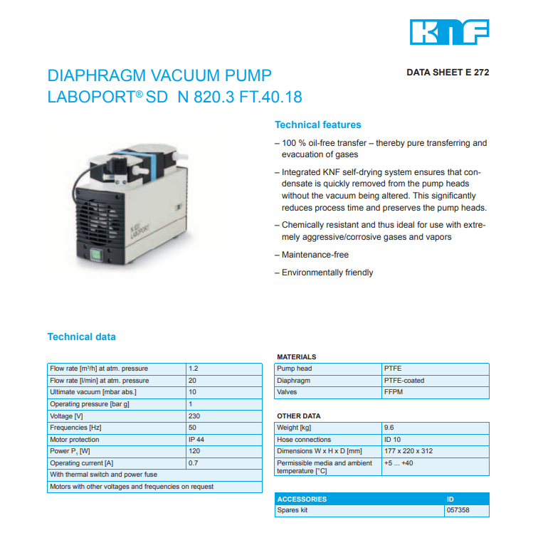N 820.3 FT.40.18 與 N 840.3 FT.40.18 真空幫浦,屬於 LABOPORT® SD(Self-Drying)自乾燥系列。