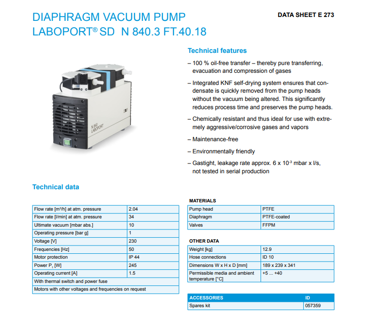 N820.3 FT.40.18 & N840.3 FT40.18 真空乾燥箱抽氣系統幫浦