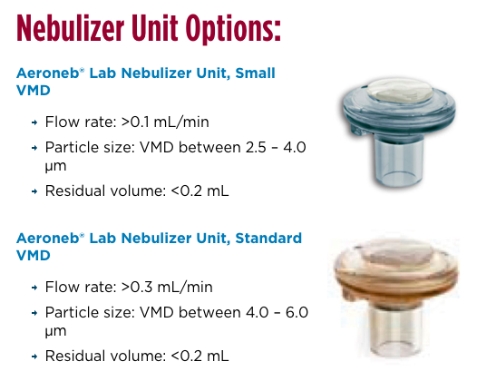 Aeroneb 霧化器 首頁 產品介紹 動物實驗設備、用品 g.霧化給藥 Aeroneb 霧化器 Aeroneb®LabMicropump 霧化器採用高效霧化技術,將藥液霧化成微小顆粒,透過呼吸吸入的方式進入呼吸道和肺部沉積,從而達到無痛、迅速有效治療的目的。 產品特色 生產高質量的可吸入氣溶膠,殘留量極低 霧化各種液體配方而不會改變或損害化合物的分子完整性 配備通用適配器,適用於100V至240V 霧化器和組件不含乳膠 產品規格 霧化頭種類