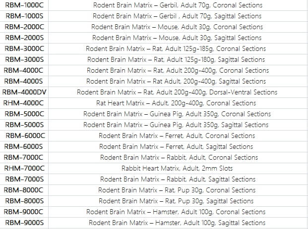 ASI腦切片盒 首頁 產品介紹 動物實驗設備、用品 b.神經科學 ASI腦切片盒 ASI儀器公司推出了革命性的囓齒動物腦基質,它在組織剝離輔助工具的耐用性和性能方面樹立了新的標準。 我們的模型具有獲得專利的自動清潔插槽設計 ,易於維護和清潔。再次提高了儀器設計的標準。 廠商網址: https://asi-instruments.com/rodent-brain-matrices/ 產品規格說明: