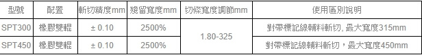 最高切條速度:120次/分鐘切條寬度調節:1.80~325 mm斬切精度:±0.10毫米殘留寬度:25 mm