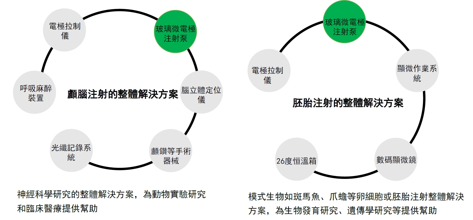 R480玻璃微電極注射泵是一款高精度、高氣密性、穩定易用的注射泵,可以針對卵母細胞、動物幼體、原生動物、動物顱腦、眼球等進行精細的定量定速的顯微注射或抽吸。在神經科學研究中,主要搭配立體定位儀對腦部進行病毒或示踪劑注射。在細胞研究領域,可以搭配顯微操縱儀對卵母細胞、胚胎等進行核酸物質、蛋白樣品、染料及其他物質的注射,包括對爪蟾卵細胞及幼蟾、斑馬魚等魚類卵細胞及胚胎內的注射或抽吸。除此之外,還可用於害蟲治理,植物防蟲等農業研究,包括對昆蟲胚胎、幼體等進行特定物質的注射或抽吸。