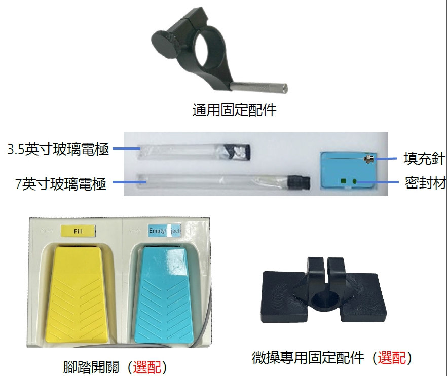 主機 / 玻璃電極 / 固定配件 / 填充針 / 密封材料
