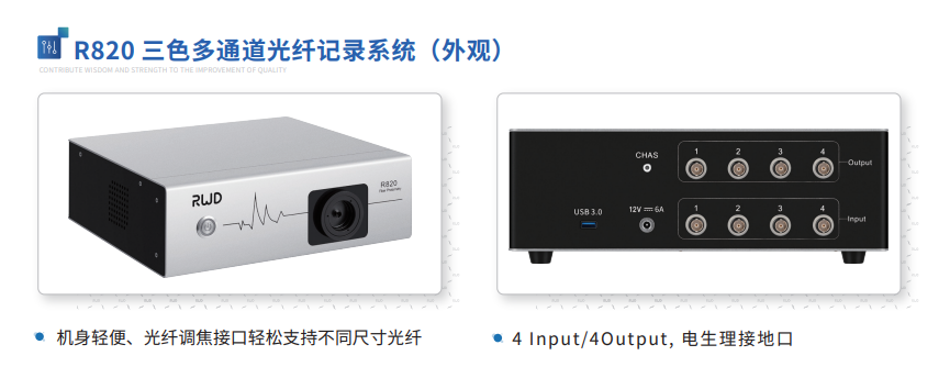R820三色多通道光纖記錄系統具備三種波長,可記GCaMP、dLight等綠色熒光指示劑或神經遞質探針,及RCaMP、jrGECO1a等紅色指示劑或神經遞質探針信號,同時特有的背景光源用於獲取對照信號,排除噪聲。