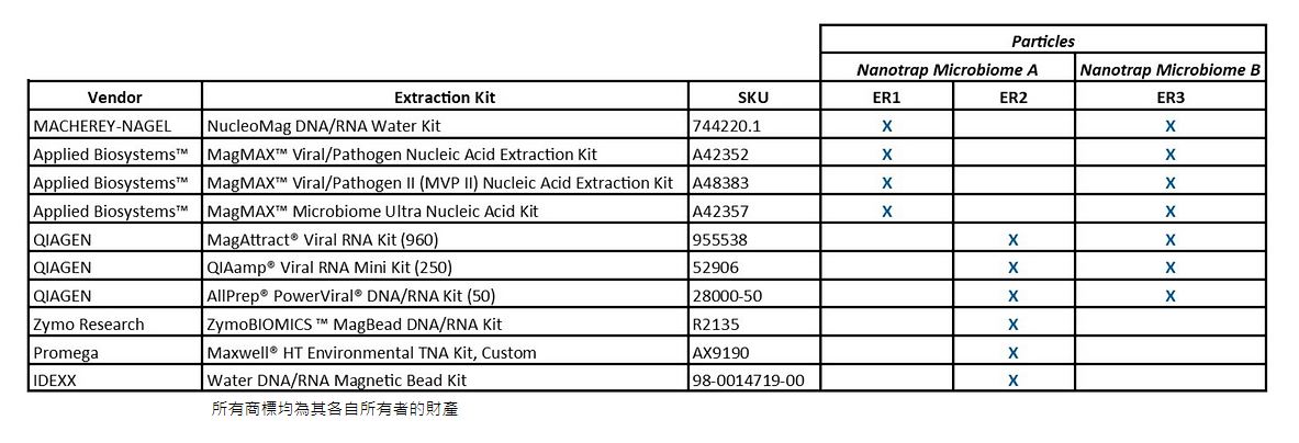 下表列出了不同核酸提取試劑盒之間的兼容性: