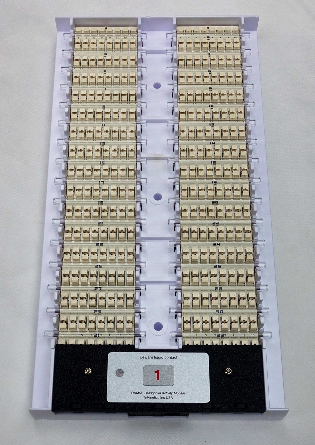 DAM5H Drosophila Activity Monitor 是美國 TriKinetics 推出的高階果蠅行為監測系統,用於精準定量記錄單隻果蠅在實驗條件下的運動活動與行為模式。與傳統活動監測儀不同,DAM5H 每根管子設有 15 個獨立紅外光束,讓每次活動不僅計數,而且能量測跨光束移動、停留時間、位置偏好等詳細行為指標。測試時,果蠅置於直徑 5mm 的專用玻璃管中,它來回穿越光束即被裝置自動記錄,數據可匯入 DAMSystem3 軟體進行整理與分析。