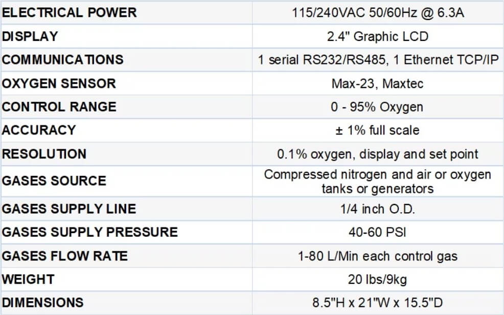 *PID迴路和反饋基於安裝在動物籠內的快速氧氣傳感器,可精確控制氧氣含量。